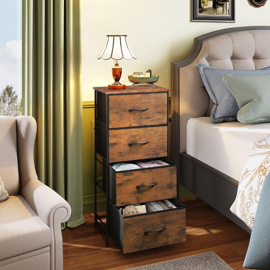 Side Table/End Table with 4 Drawers for Bedroom Storage | Wood Pattern