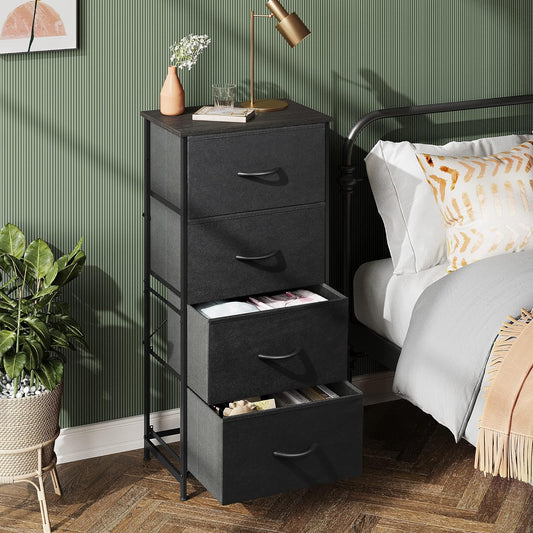 Side Table/End Table with 4 Drawers for Bedroom Storage | Black