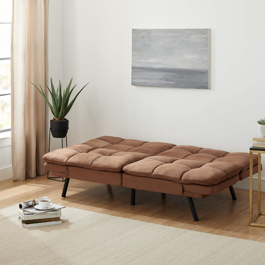 Couch Bed Futon Sleeper Sofa for Living Room | Brown Memory Foam