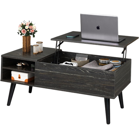 Coffee Table with Lifting Top and Hidden Storage for Living Room| Black Wood Pattern