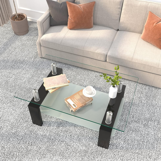 Coffee Table with Bottom Storage for Living Room | Black Wood
