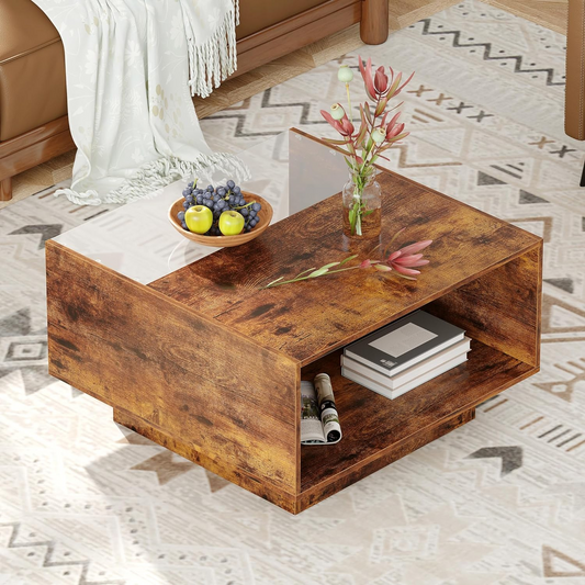 Coffee Table with LED Glass Display for Living Room | Wood Pattern