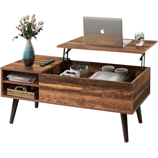 Coffee Table with Lifting Top and Hidden Storage for Living Room | Wood Pattern