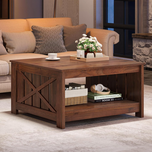 Coffee Table with Bottom Storage for Living Room | Dark Wood