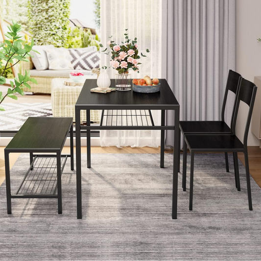 Juego de comedor que incluye mesa, sillas y banco para cocina | Negro