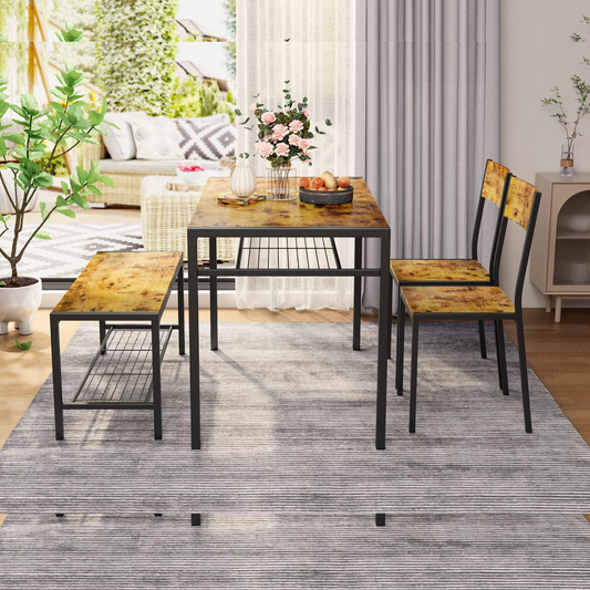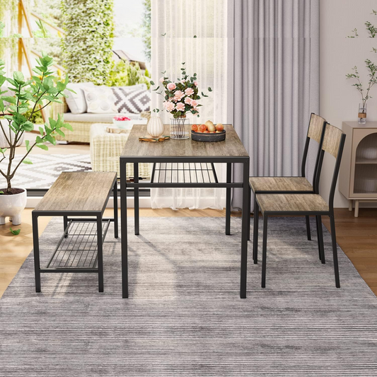 Juego de comedor que incluye mesa, sillas y banco para cocina | Madera